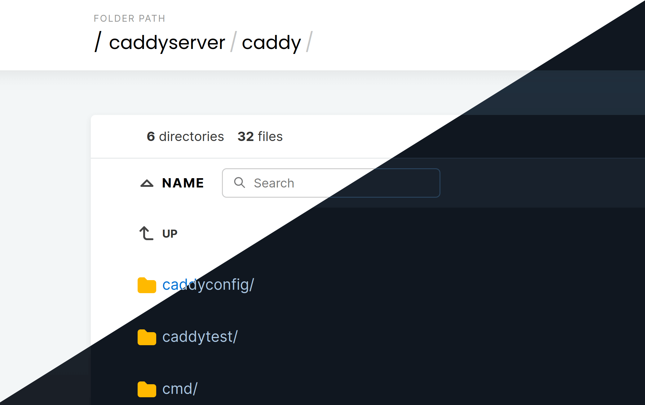 If a directory without an index file is requested, Caddy can show an elegant file browser with breadcrumb nav, file size visualizations, filetype icons, and a grid view.